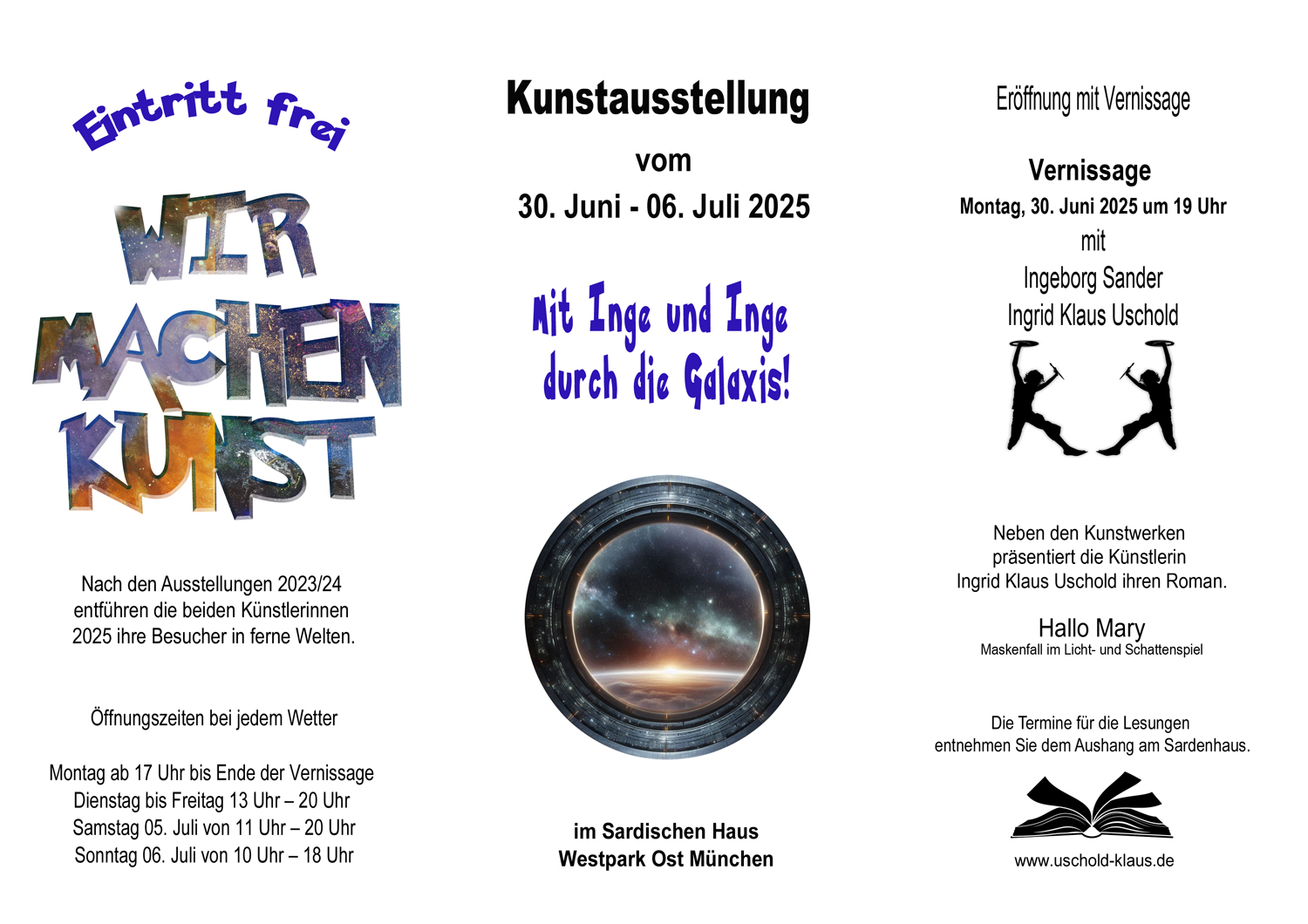 Nach zwei Ausstellungen 2023/24 entführen die Künstlerinnen Ingeborg Sander und Ingrid Klaus Uschold dieses Mal im Sommer 2025 ihre Besucher in ferne Welten.